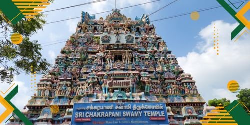 Lord Vishnu is worshipped in Chakrapani Temple as the Sudarshana Chakra. The deity faces west, which makes the temple distinctive. It is among Kumbakonam's most significant Vaishnavite temples. Worship here, according to devotees, brings prosperity and protection.